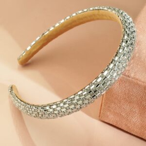 Luxe Silver Crystal Embellished Beige Velvet Headband for Elegant Look – Silver