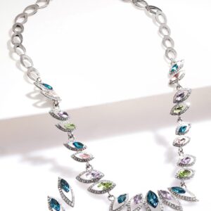 Rhodium-Plated Multihued Zirconia Embellished Flowerlet Necklace set – Multicolor