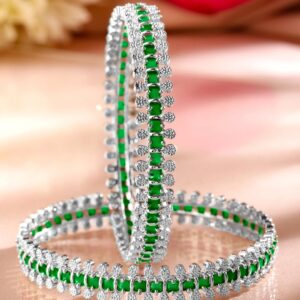 Set of 2 Rhodium-Plated Cubic Zirconia Studded Floral Pattern Premium Bangles – 02-Jun