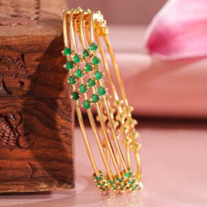Set of 4 22K Gold-Plated Emerald Green Stone Handcrafted Bangle Set – 2.8