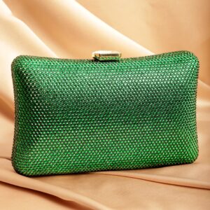 Green With Dazzling Crystal Zirconia Embellished Contemporary Clutch handbag – Green
