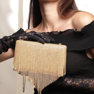 Cream With Dazzling Crystal Zirconia Embellished Contemporary tassels Clutch handbag – Gold