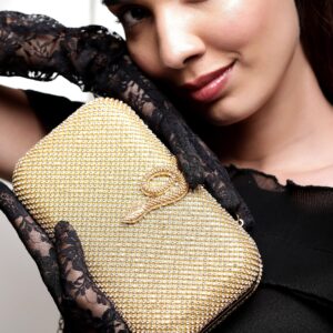 Gold With Dazzling Crystal Zirconia Embellished Serpent motif Clutch handbag – Gold