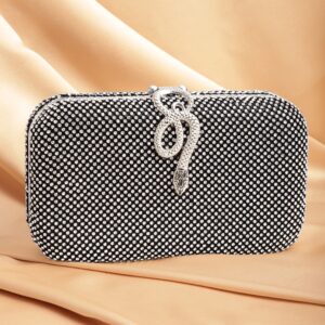 Grey With Dazzling Crystal Zirconia Embellished Serpent motif Clutch handbag – Grey