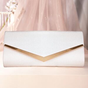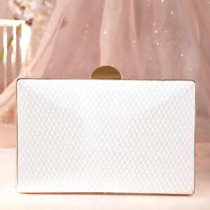 Chic Simplicity Handcrafted Beige Textured Glossy Finish Clutch Bag – White