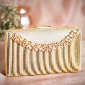 Artisan Elegance Handcrafted Gold Shimmery Clutch Bag – Gold
