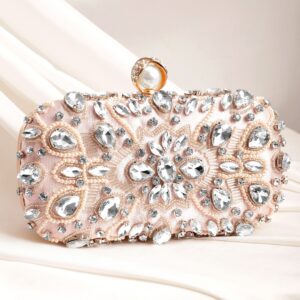 Dazzling Allure Handcrafted Shimmery Clutch Bag – White