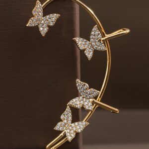 18K Gold Plated Butterfly Cubic Zirconia Studded Statement Ear Cuff Earrings – Gold