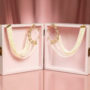 22K Gold Plated Kundan & Pearl Multi-Strand Ear Cuff Chain Extension Earrings – Gold