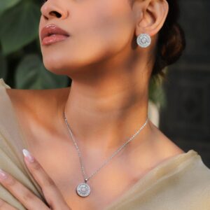 Faux Emerald Stone Studded Zircon Jewellery Set – Green::Silver