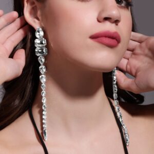Rhodium Plated Premium AAA Crystal & Cubic Zirconia Studded Triangular Drop Earrings – Dual Color