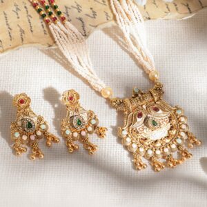 Gold Pendant, White Pearls, and Beaded Chain Choker Set – Gold