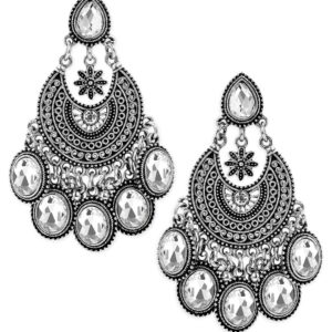 Silver-Plated Kundan Classic Jhumkas – Silver
