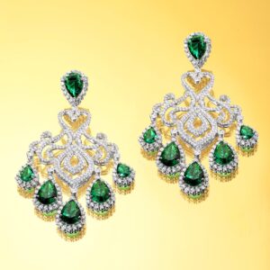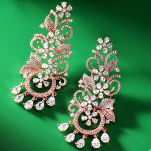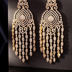 18k Gold Plated Plated Zirconia Studded Chandelier Earrings – Gold