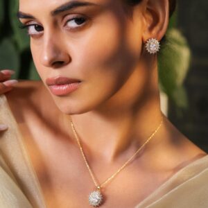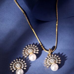 22K Gold Plated Pave Zirconia & Pearl Studded Radiant Pendant Set – Gold