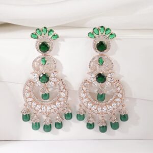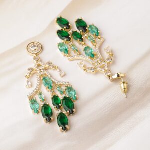 22K Gold-Plated Emerald & Aqua Green AD & Cubic Zirconia Studded Chandelier Earrings – Gold