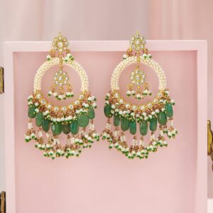 18K Gold-Plated Emerald & Zirconia Studded Green Beaded Long Chandbali Earring – Gold