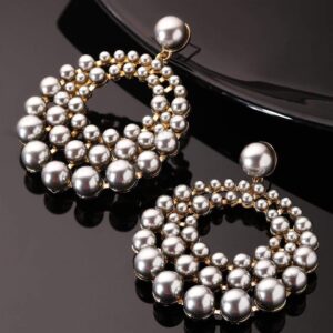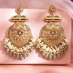 22K Gold-Plated Pearl & Grey Stone Studded & Beaded Big Traditional Chandbali Earrings – Grey