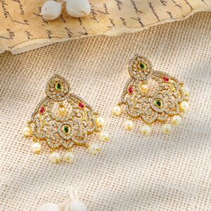 Finely Handcrafted Gold Plated CZ And Ruby Studded Chandbali Earrings – Gold