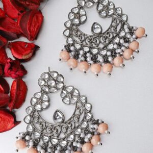 Black Metal Kundan Statement Chandbali Earrings – Peach