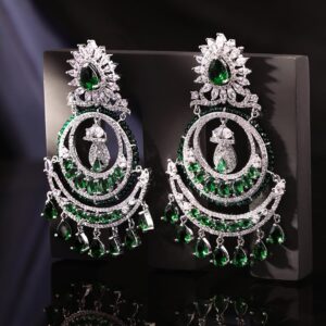 Rhodium Plated CZ Stone Studded Chandbali Earrings – Silver