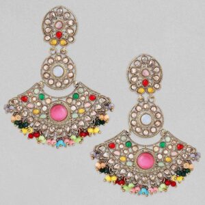 22K Gold-Plated Multi-Color Stone & Kundan Studded Chandbali Earrings with Beads