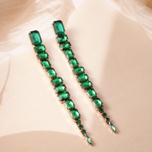 18K Gold Plated Emerald Green Studded Glamorous Shoulder Duster Drop Earrings – Drop