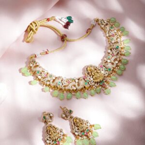 24K Gold Plated Handcrafted Mint Green & White Cubic Zirconia Studded Choker Set – Green