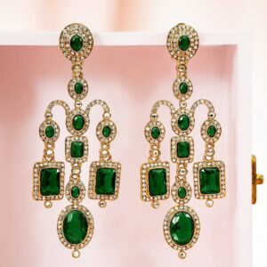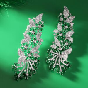 Rhodium Plated Luxury Premium Green Emerald and AAA Cubic Zirconia Stud Earrings – Silver
