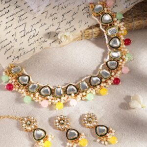 Royal Splendor 22K Gold Plated Kundan and Pearl beaded Choker jewelry Set – Gold