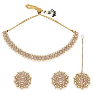 24K Gold Plated Handcrafted Ruby Stone Studded & Gold Beaded Traditional Choker Set – Gold