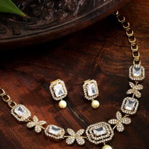 18K Gold-Plated White Kundan Studded & White Pearls Beaded Traditional Choker Jewellery Set – White