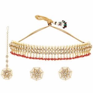 Luxury 24K Gold Plated Handcrafted Ruby stone & Gold Pearls Studded Choker Set – Multicolor
