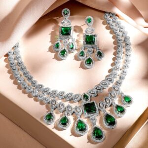Rhodium-Plated White AD & Cubic Zirconia Studded Premium Necklace Jewellery Set – Silver
