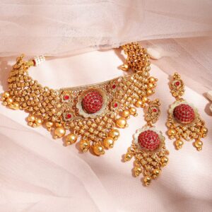 22KT Gold Plated Brass Emerald Stone Studded Beaded Pendant Set – Green