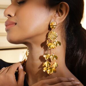 18K Gold-Plated Floral Petal Cascade Long Statement Earrings