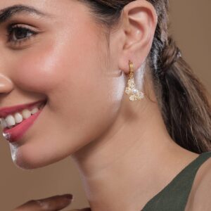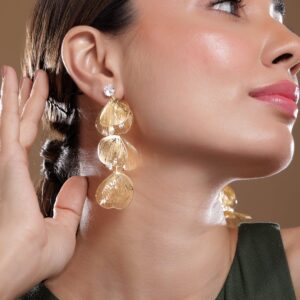 22K Gold Plated Handcrafted Kundan Studded Floral Design 3-Layered Jhumka Earrings – Gold