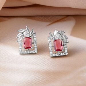 Silver Plated Handcrafted Pink Zircon Stone Stud Earrings – Pink