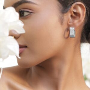 Rhodium-Plated Cubic Zirconia Studded Minimal Statement Half-Hoop Earrings