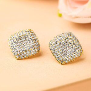 18K Gold-Plated White Kundan Stud Earrings in Square Design
