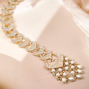 22K Gold Plated Kundan & Pearl Studded Bridal Hair Accessory for Wedding Look – Gold