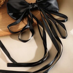 Black Satin Bow Hair Clip with Flowing Ribbon Strands for Elegant & Stylish Look – Black