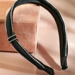 Black Satin Headband with Cubic Zirconia Embellishments – Gold