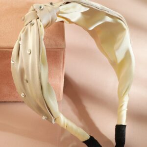Elegant Cream Satin Knot Headband with Crystal Embellishments for Chic Look – Cream