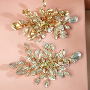 Handcrafted Golden & Silver Crystal Leaf Design Side Clip Hair Accessory Set of 2 for Women