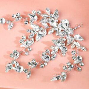 Handcrafted Silver-Toned Crystal Leaf Design Side Clip Hair Accessory Set of 2 for Women