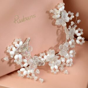 Handcrafted Transparent Crystal Butterfly Tiara Hair Accessory with Pearls for Women