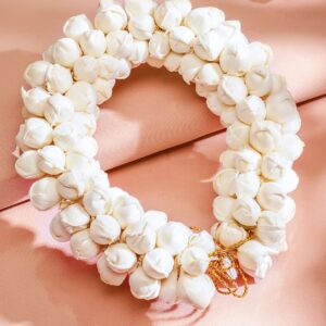 Handcrafted White Faux Flower Hair Bun Accessory with Golden Thread Detailing – White