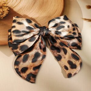 Leopard Print Satin Bow Hair Clip for Trendy & Bold Fashion Statement – Black