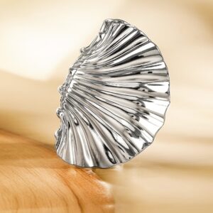 Rhodium Plated Sculpted Shell Design Hair Claw Clip – Statement Hair Accessory – Silver